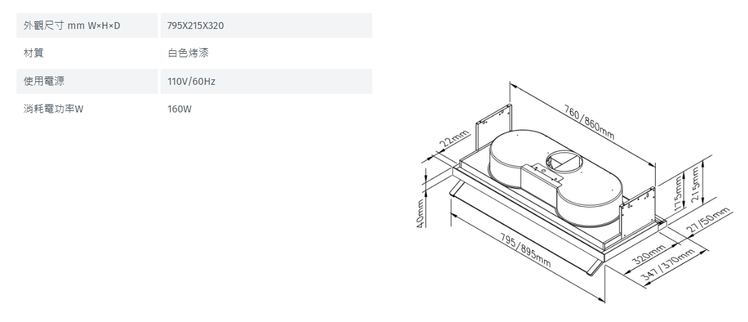 2.排油煙機需要注意目前的機體寬度是多少,機體寬度通常為70、80、90公分。