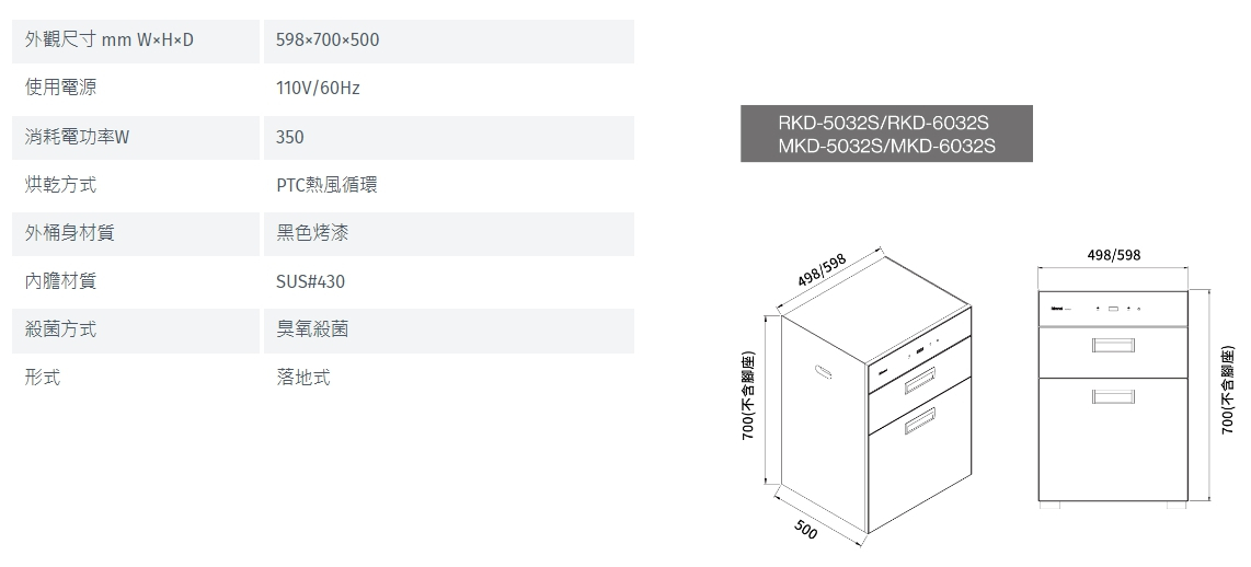 林內 RINNAI RKD-6032S 落地式臭氧殺菌烘碗機