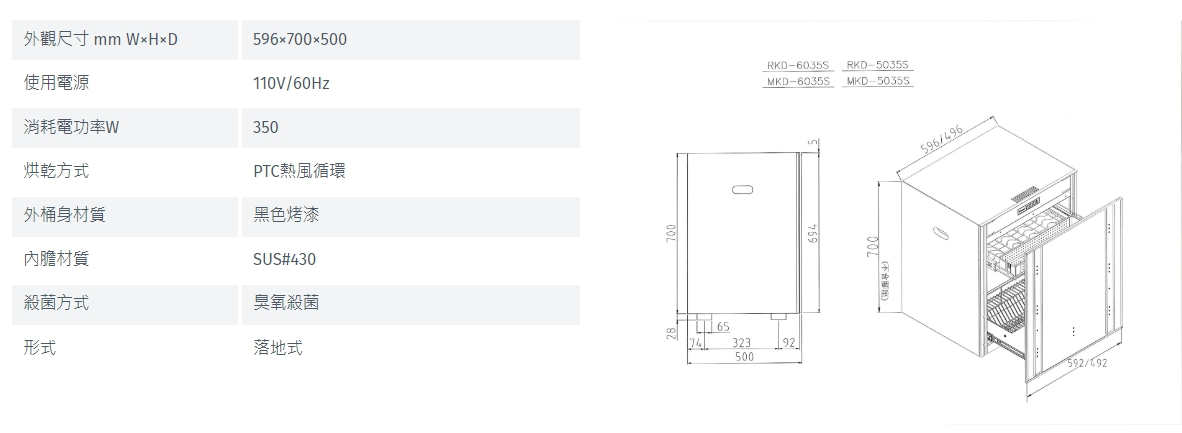 林內 RINNAI RKD-6035S 落地式臭氧殺菌烘碗機