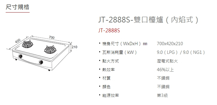 喜特麗JT-2888S 高效節能內焰傳統檯爐