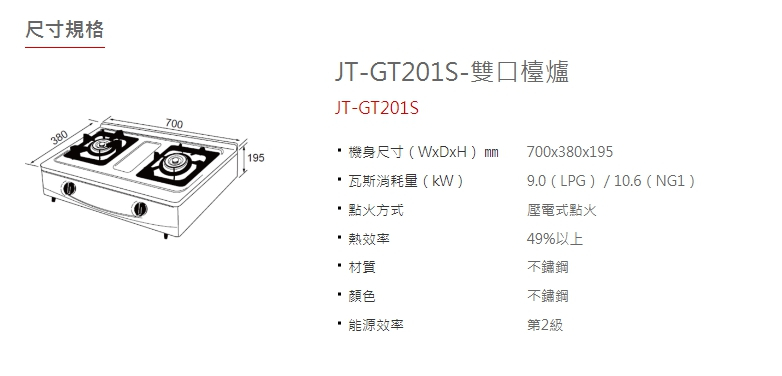 喜特麗 JT-GT201S 雙口 檯爐