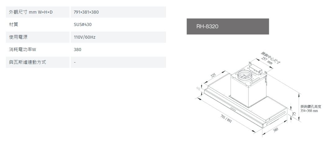林內 Rinnai RH-8320 雙星|雙導流板排油煙機