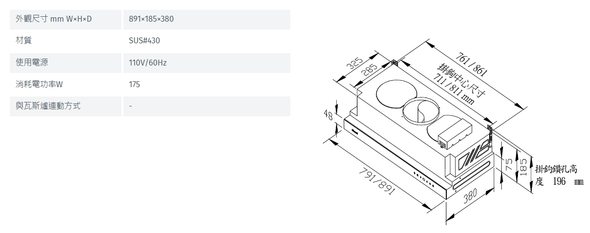 2.排油煙機需要注意目前的機體寬度是多少,機體寬度通常為70、80、90公分。