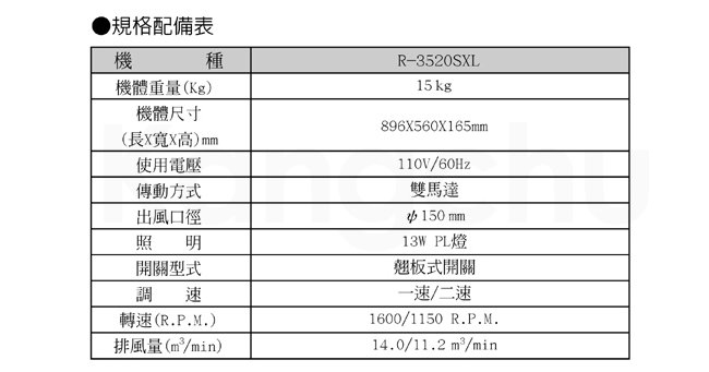 SAKURA 櫻花牌 R3520 SXL 雙渦輪雙馬達隱藏式除油煙機