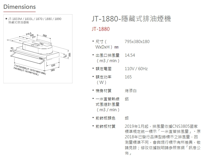 喜特麗 JT-1880 隱藏式超薄型排油煙機【80cm】
