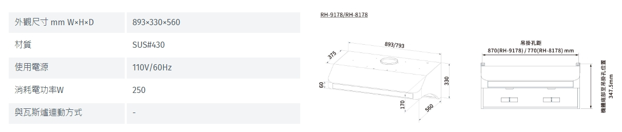 林內 Rinnai RH-9178 深罩式全直流變頻排油煙機