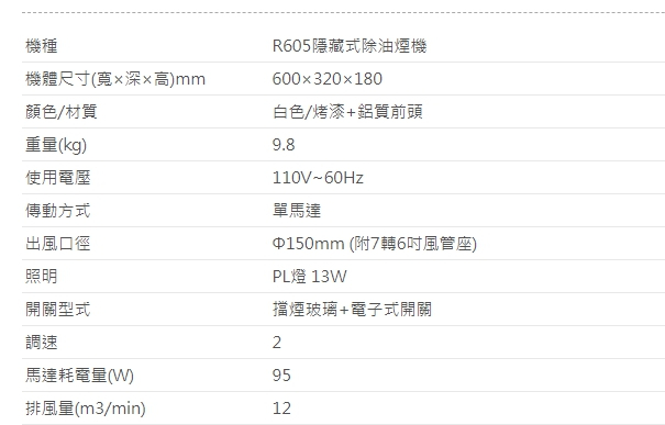 SAKURA櫻花牌 R605 60cm輕巧型除油煙機(半全隱藏式)