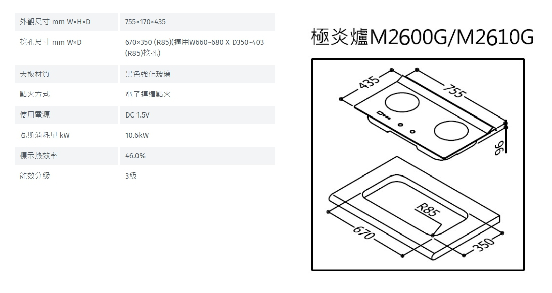 適合大部份爐具挖孔尺寸