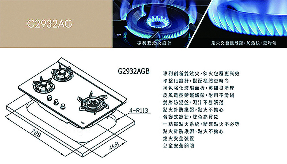 SAKURA 櫻花牌G2932AG 三口雙炫火玻璃檯面爐