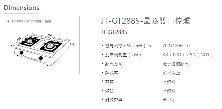 喜特麗 JT-GT288S 晶焱雙口不鏽鋼檯爐