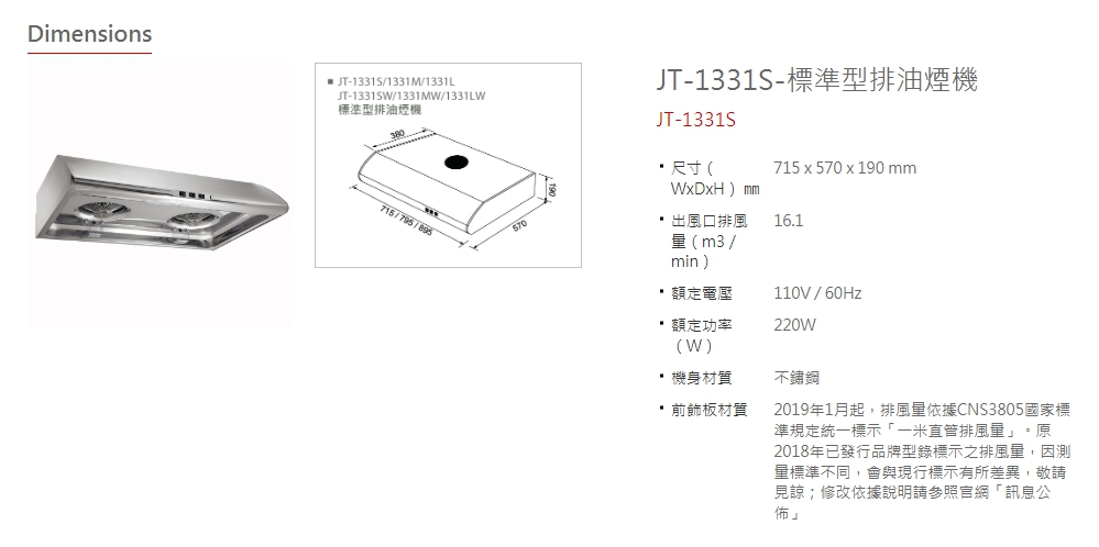 喜特麗 JT-1331S 標準型排油煙機--72公分不鏽鋼