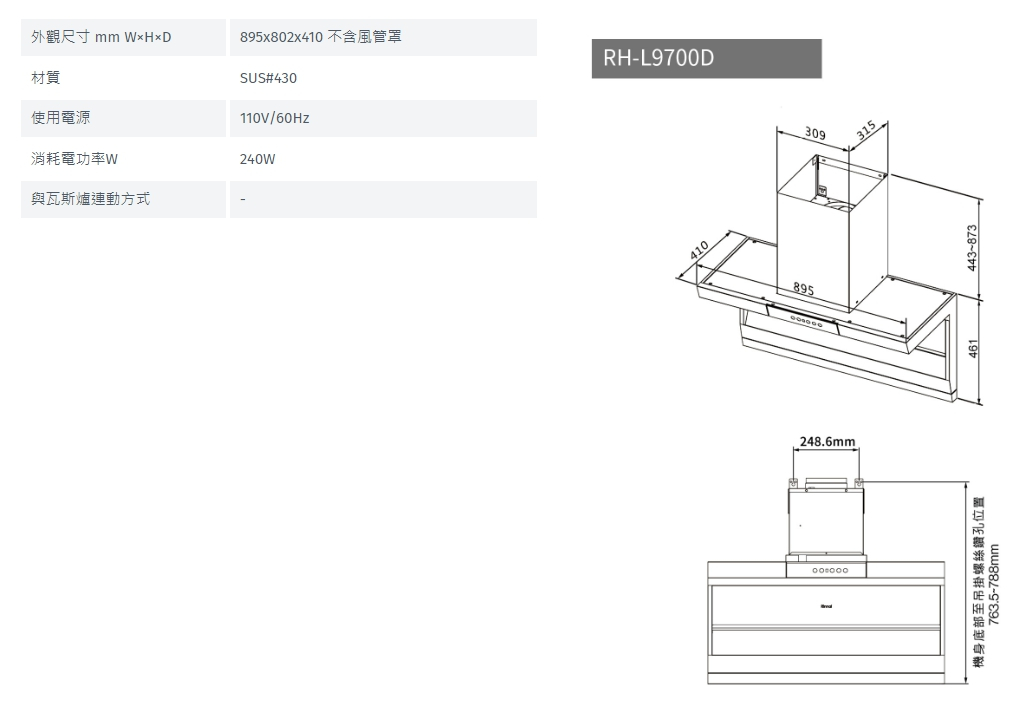 林內 Rinnai RH-L9700D 頂側雙吸排油煙機