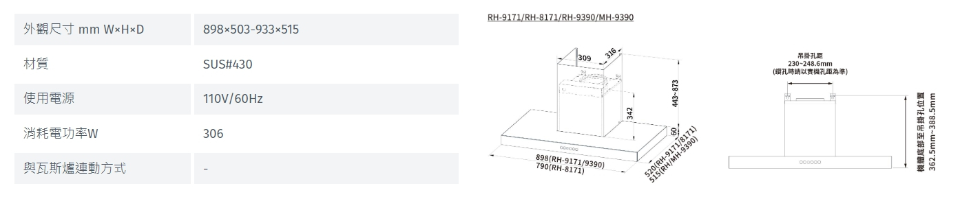 林內 Rinnai RH-9390 倒T式4D直吸導流設計排油煙機