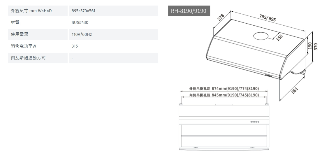 林內 Rinnai RH-9190 深罩式高速馬達排油煙機