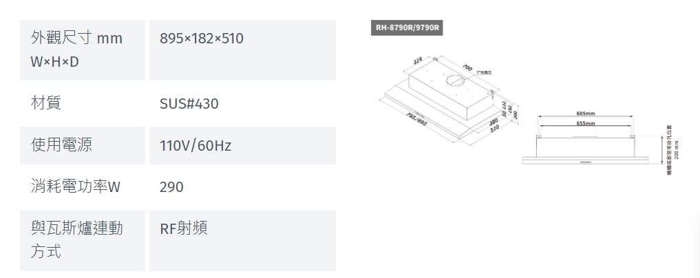 林內 Rinnai RH-9790R 隱藏式智能連動排油煙機