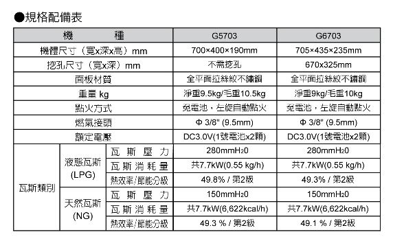 櫻花牌 G6703S 內燄防乾燒崁入爐