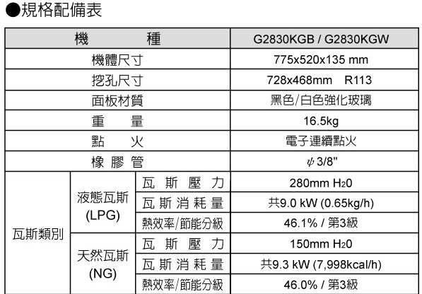 SAKURA 櫻花牌G-2830KG 三口防乾燒節能檯面爐